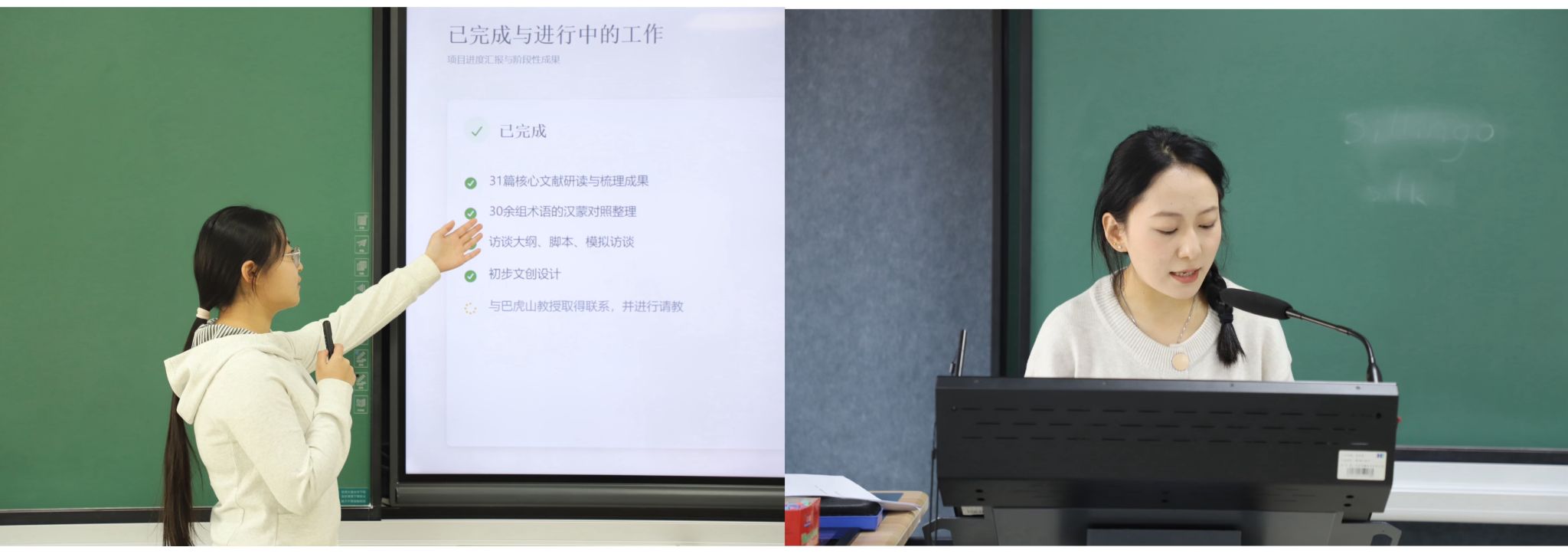 为深入贯彻创新驱动发展战略,检验学院大学生创新创业训练计划项目成果,切实提高学生的创新精神、创业意识和创新创业能力,3月23日,中国少数民族语言文学学院在日新楼205教室举行了2025年度大学生创新创业训练计划项目中期答辩会。学院副教授赵天成,讲师阿依登,团委书记彭傲担任答辩评委。