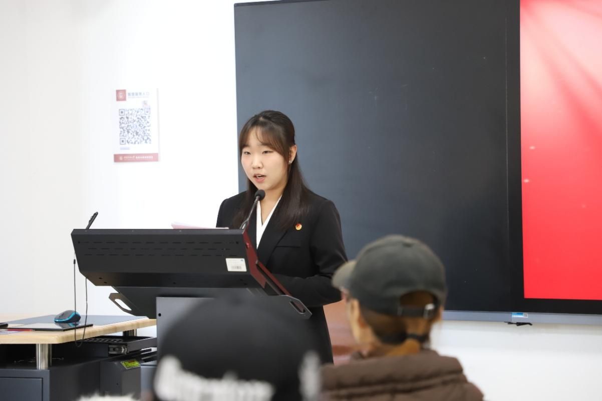 学生会办公室干事申芝瑛领学复信青年汉学家重要精神,领会“汉学源自中国、属于世界,是全人类共同的精神财富”这一重要论断的精神内涵,鼓励同学们发挥专业优势,争当“融通古今中外的文明使者”,在文明互鉴中展现使命担当。学生会宣传部干事艾伊莎则以亲身感悟分享理论学习的心路历程,用鲜活事例诠释理论学习的温度与力量,引发同学们的共鸣。