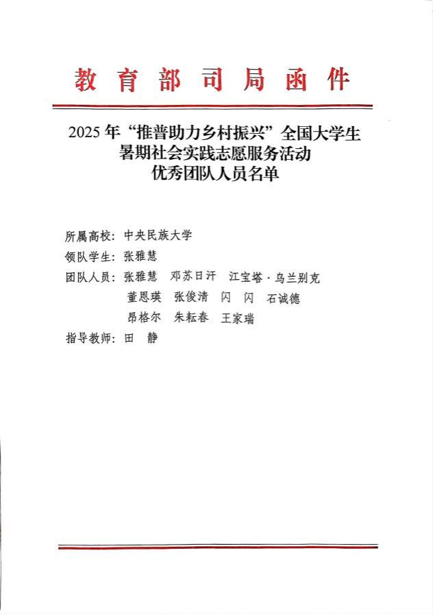 近日,学院2025年暑期社会实践“赴贵州黔东南苗族侗族自治州榕江县‘语润边疆’推普专项社会实践团”收获来自教育部、共青团中央的联合表彰!该团队从全国数千支队伍中脱颖而出,获评2025年“推普助力乡村振兴”全国大学生暑期社会实践志愿服务活动优秀团队!
