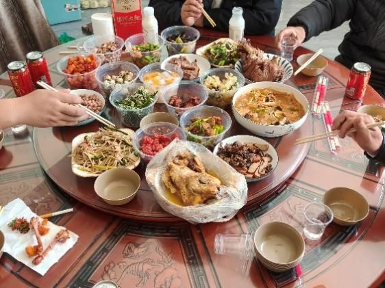 在我的家乡,大年初二有个习俗:出嫁的女儿会携丈夫、孩子回娘家吃团圆饭。这张照片正是我跟随母亲回姥姥家时的团圆饭,温馨又令人垂涎。
