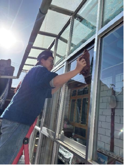 春节将至和家人一起擦窗户劳动,窗棂上的冰霜在阳光下融化成水珠,顺着玻璃蜿蜒而下,映出她和母亲弯腰擦拭的身影。