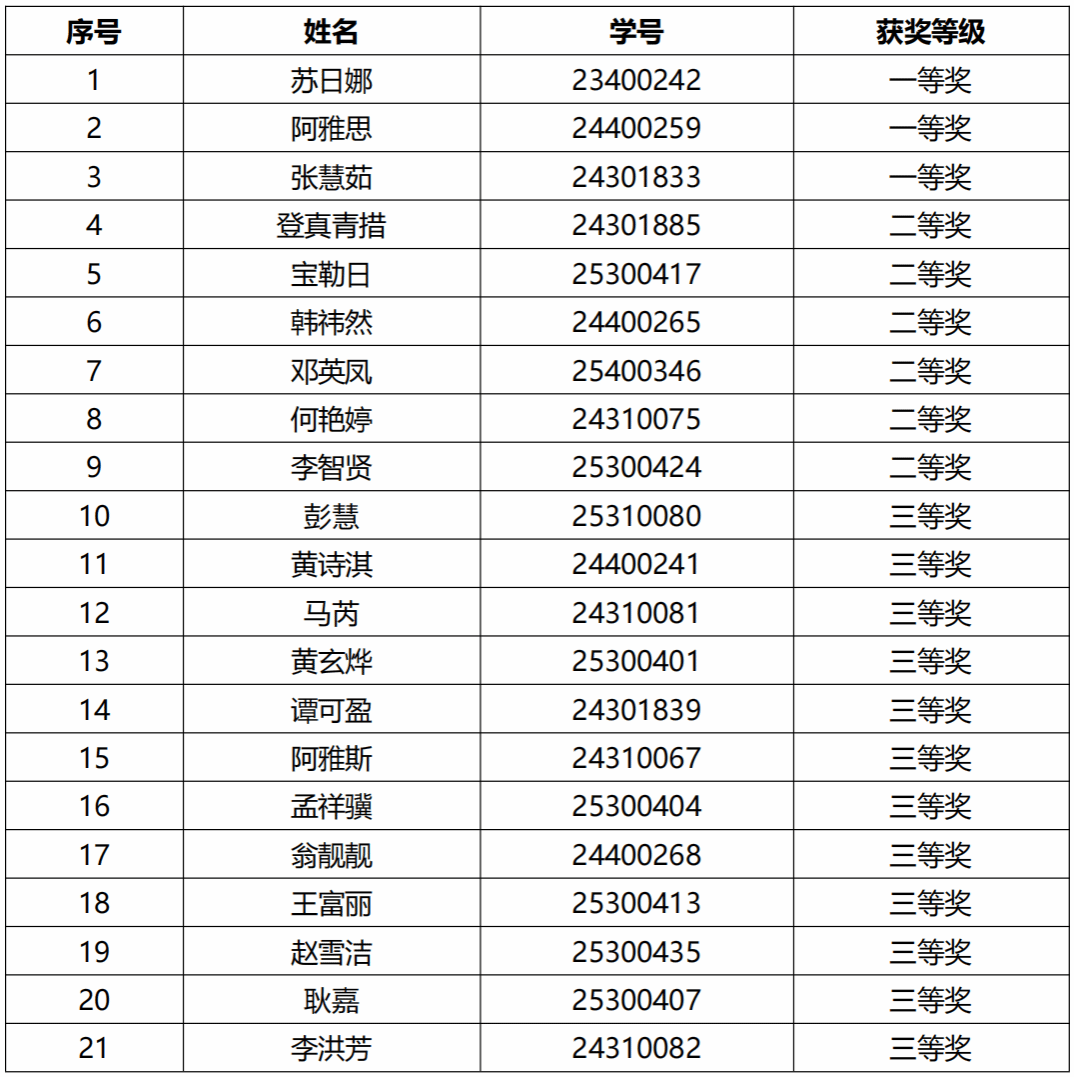获奖名单公示