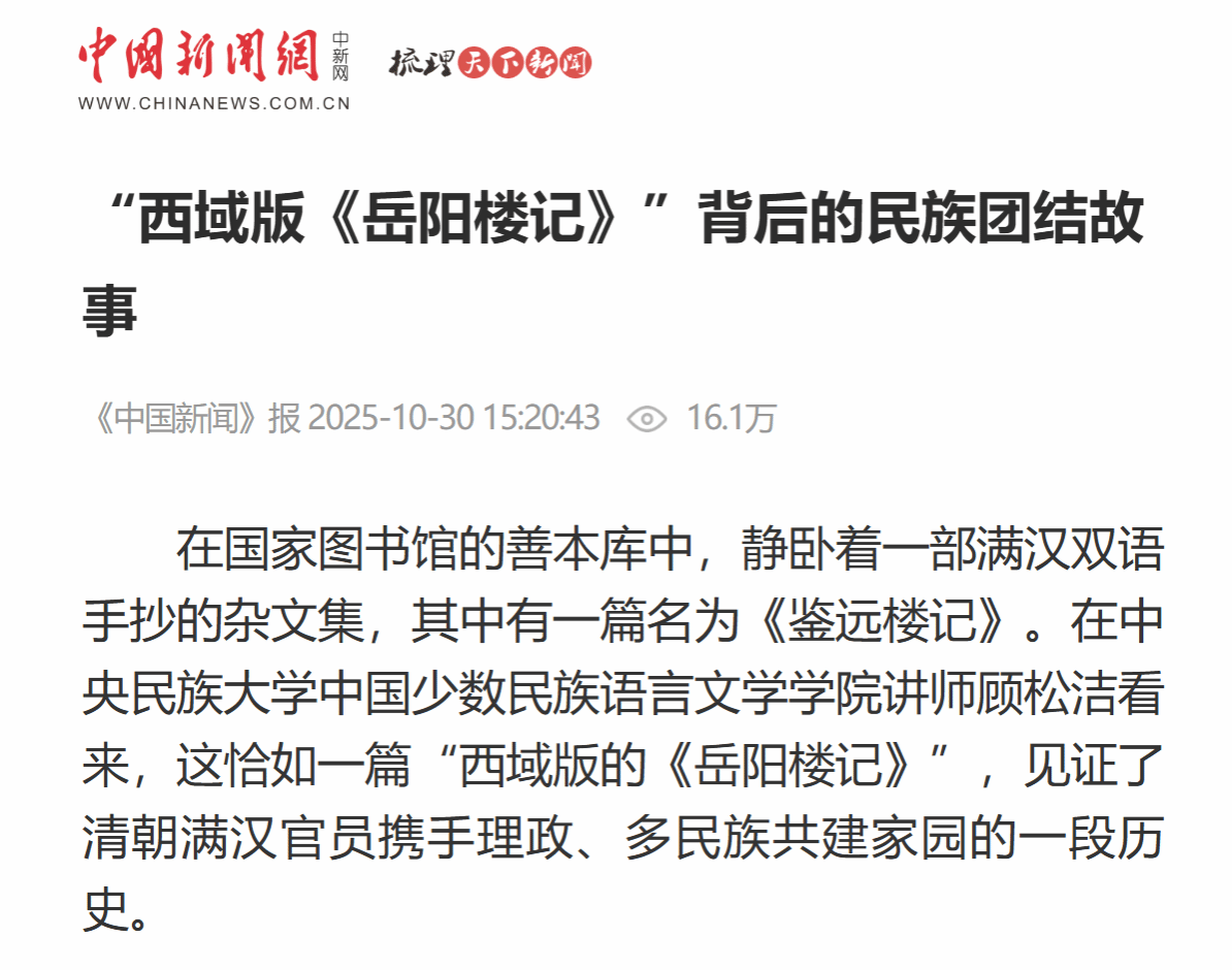 “西域版《岳阳楼记》”背后的民族团结故事 | 中国新闻网采访我院顾松洁老师