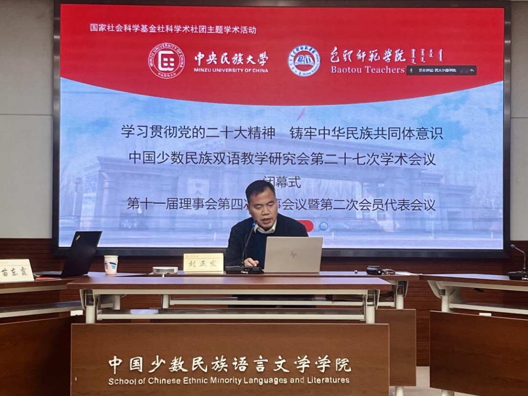 20日下午召开中国少数民族双语教学研究会会员代表大会。秘书长兼法人代表苗东霞教授向大会做了《中国少数民族双语教学研究会2022年度工作报告及2023年工作计划》《中国少数民族双语教学研究会章程》修订说明,以及延期换届、增补常务理事和理事及吸收会员等事宜。最后,研究会副秘书长刘正发教授代表组委作了大会总结,他全面总结了一天半的学术会议。会员代表大会及闭幕式由钟进文教授主持。