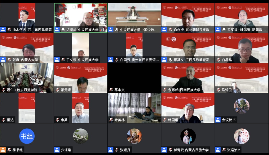 会议主旨报告、圆桌论坛和大会发言阶段,30位专家学者齐聚云端,紧紧围绕“学习贯彻党的二十大精神,铸牢中华民族共同体意识”主题,对新时期如何更好地“大力推广普及国家通用语言文字,科学保护各民族语言文字”展开深入的学习交流。大会报告之后按“民族地区国家通用语言文字教育教学与铸牢中华民族共同体意识建设”“民族地区乡村振兴战略实现与推广国家通用语言文字实践和经验”“民族地区推广普及国家通用语言文字实践路径研究”及“其他”4个议题分为8个小组宣读分享了85篇论文和研究报告。