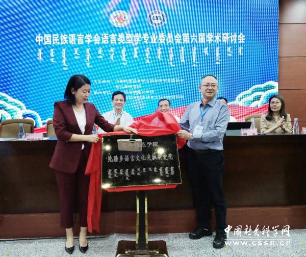 包头师范学院副校长格根哈斯和中国社会科学院中国少数民族语言研究中心主任、《民族语文》编辑部主任、中国民族语言学会副会长兼秘书长、中国民族语言学会语言类型学专业委员会主任黄成龙为包头师范学院多语言文化交融研究院揭牌。会议开幕式由包头师范学院文学院院长李国德主持。